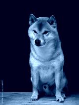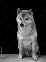 red dog on a black background. Beautiful Shiba Inu in the studio