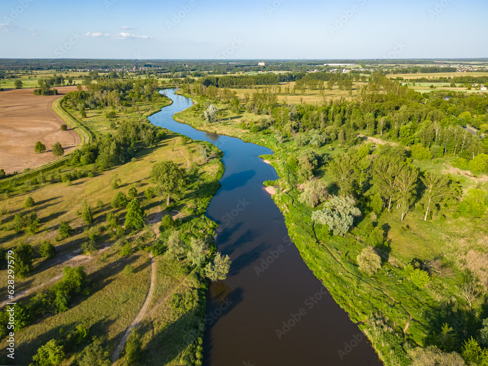 View at the bridge at Warta river in Sieradz city in Poland