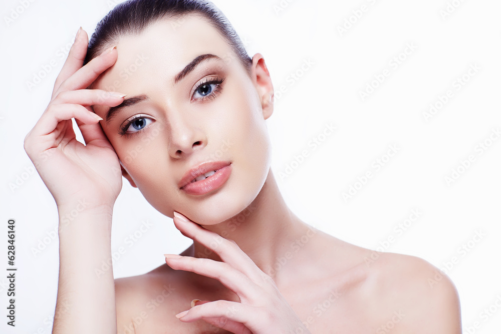 Beauty Portrait. Beautiful Spa Woman Touching her Face