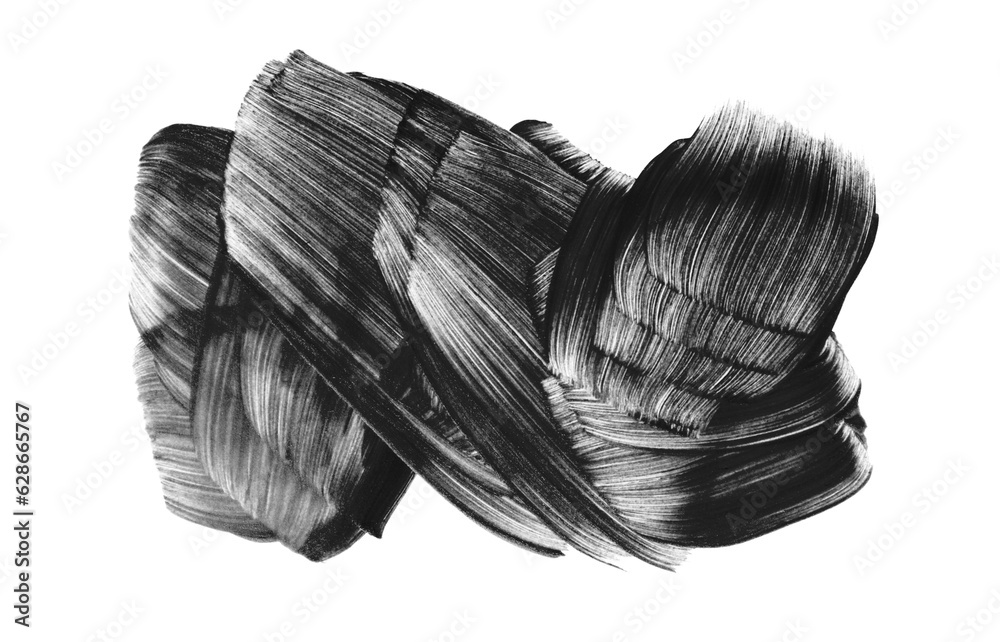 Art scrawl line brushstroke painting smear ink blot. Abstract black contrast grain grunge stain on white background.