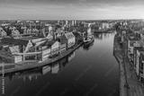 Gdansk Stare Miasto z lotu ptaka. Gdansk Old City. Widok na Motlawe przy pieknym zachodzie slonca. Lipiec 2023