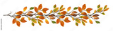 Autumn twig with colorful leaves in a seasonal garland isolated on white or transparent background