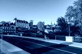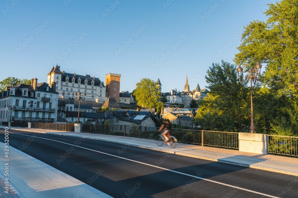 Bridge of XIV juillet and the castle of Pau with a biker crossing