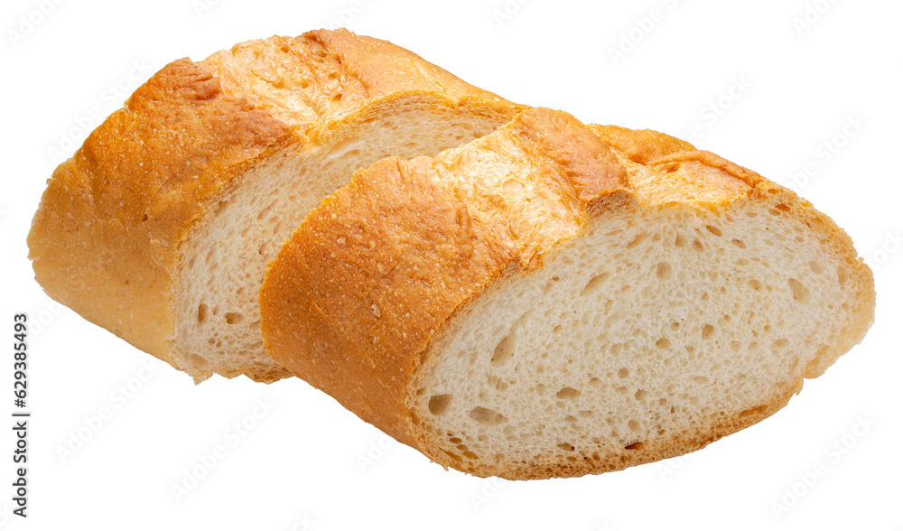 Baked delicious baguette bread isolated on white background, Baguette bread on white Png file.
