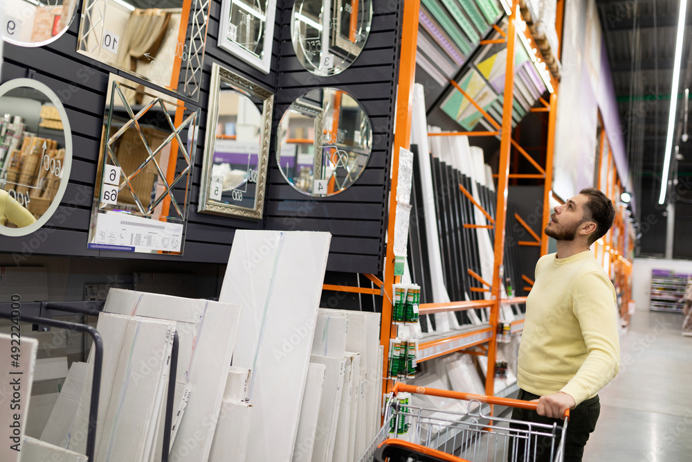 handsome young courier american man wearing corporate clothing consisting of a red cap and t-shirt