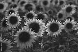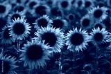 Słoneczniki w zachodzącym Słońcu na polu wykonane pod Słońce