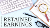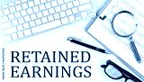 RETAINED EARNINGS text on blue background with keyboard and clipboard, business concept