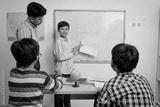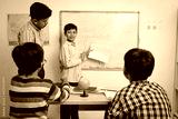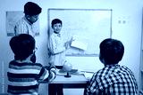 Schoolboy Asian student presenting project to friends and teacher during class lesson at school