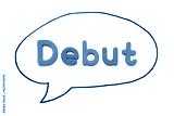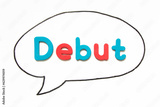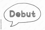 Alphabet letter with word debut in black line hand drawing as bubble speech on white board background