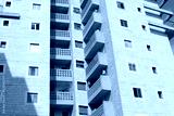 Abstract fragment of modern architecture, glass and concrete walls.