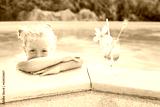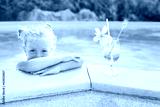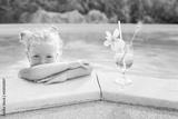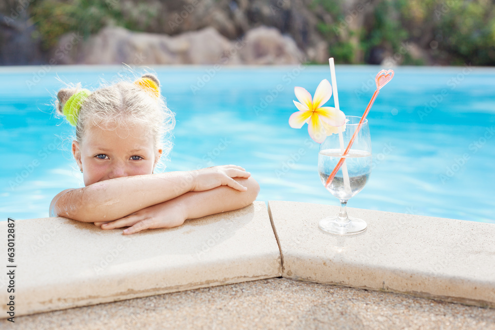 toddler girl with cocktail in tropical beach pool