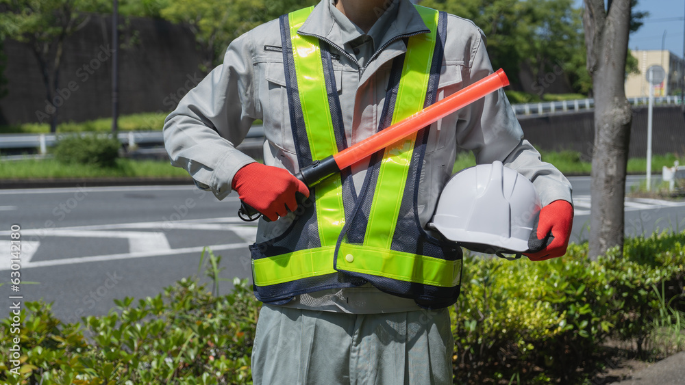 安全ベストを着た作業服姿の男性|建設業・警備員・ガードマン イメージ