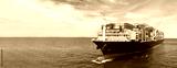 Cargo container Ship, cargo vessel ship carrying container and running for import export concept technology freight shipping sea freight by Express Ship. front view