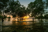 sweet sunset at Klong Mudong. .Beautiful The glare of the sun shone through the mangroves..Reflections of the sun in the mangroves on the seaside of the mangroves..seaside mangroves background.