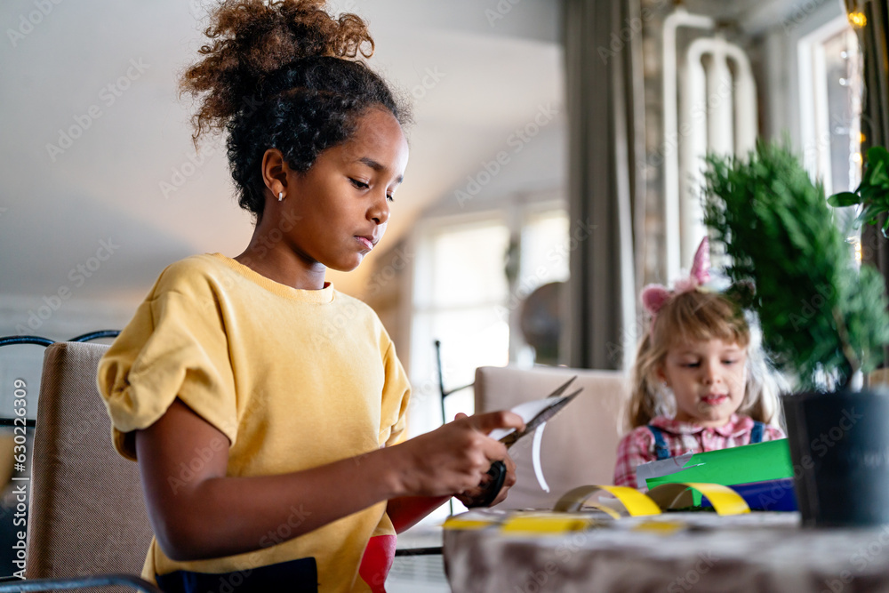 Multicultural group of kids with creative handicraft.Children diversity happiness education concept.