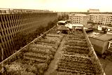 View of a lush green organic rooftop garden in Copenhagen, Denmark