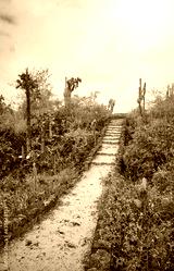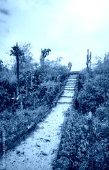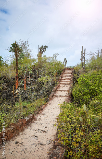 Trail by giant opuntias (Opuntia galapageia) on Santa Cruz Island, Galapagos National Park, Ecuador.
