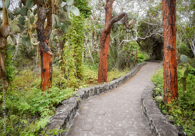 Trail by giant opuntias (Opuntia galapageia) on Santa Cruz Island, Galapagos National Park, Ecuador.