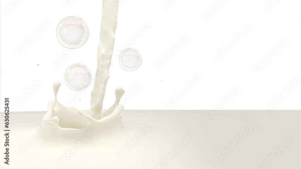 Strawberries fall into milk, shattered 3d rendering_EP4