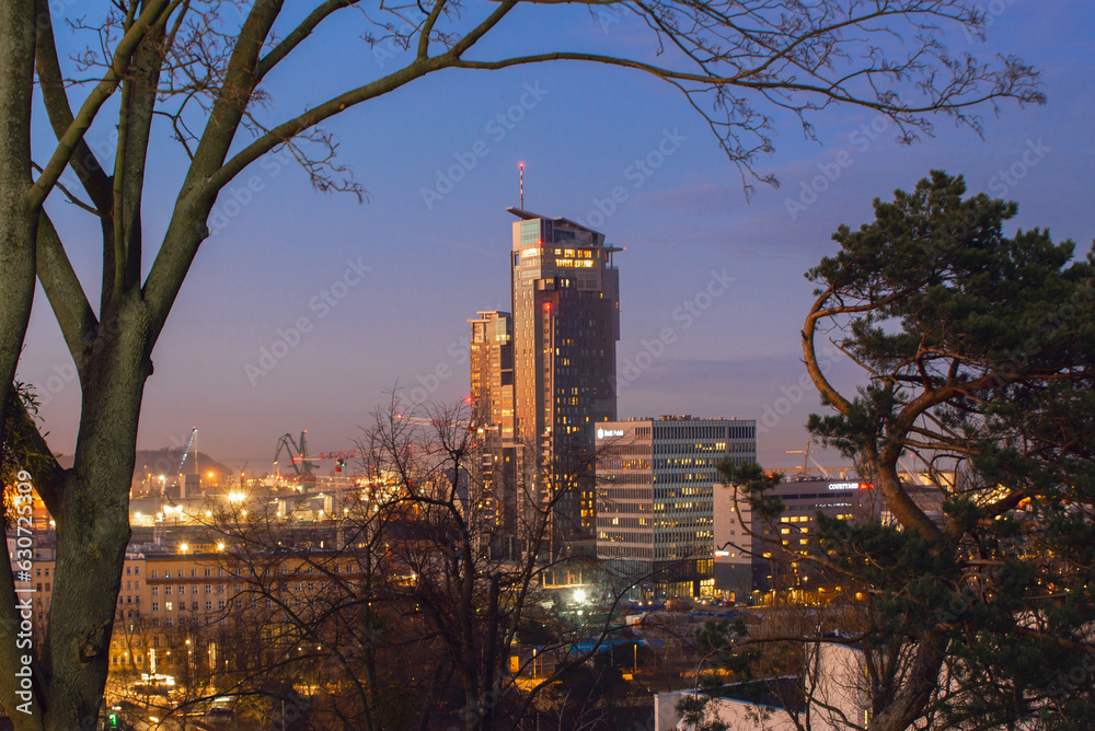 Gdynia, Poland - an overlook at city panorama at twillight.