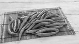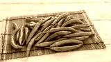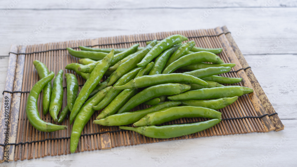 青唐辛子と白い木目背景