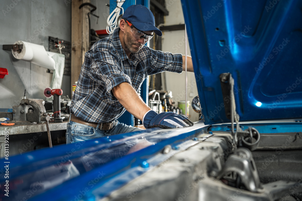 Mechanic Taking Care of the Classic Vehicle Restoration Project