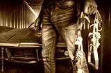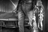 A Man with a Straps Next to Shipped Classic Car
