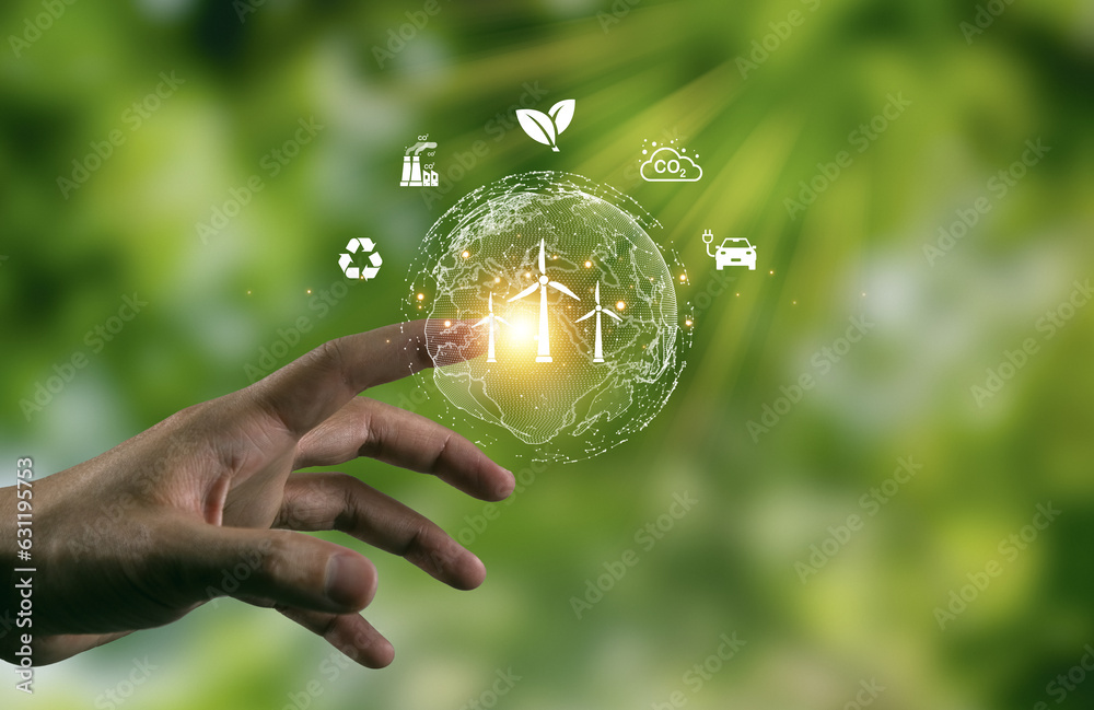 Renewable circular economy icon resource concept for saving, global warming reduction, carbon reduction, environmental protection, alternative energy