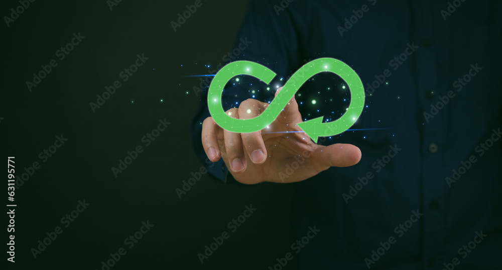 Renewable circular economy icon resource concept for saving, global warming reduction, carbon reduction, environmental protection, alternative energy