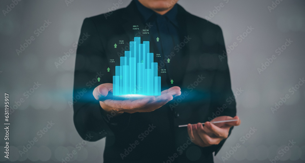 investor business planning and strategy stock market gold trading mutual fund for business growth Demonstrates the progress or success of profits achieved.