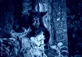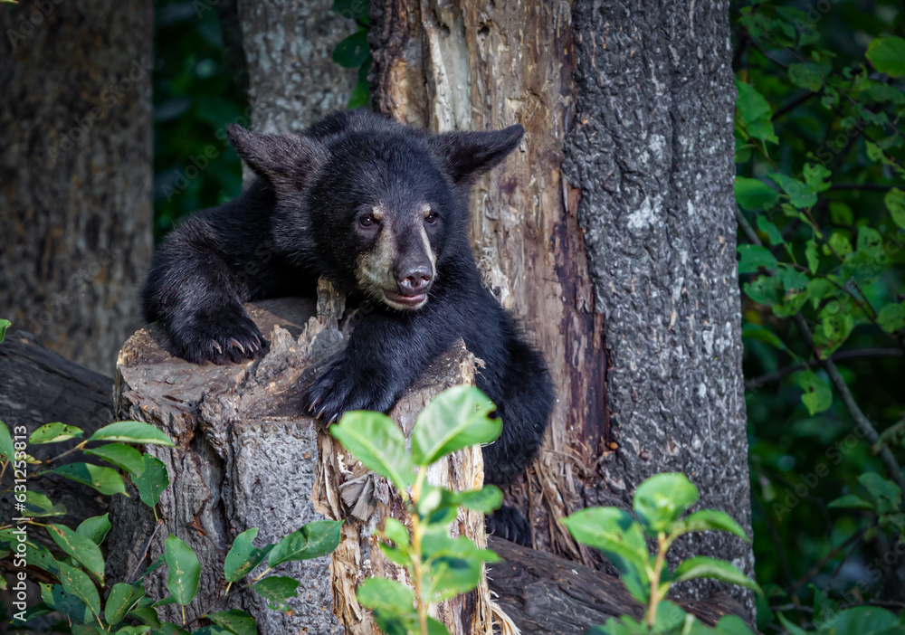 Young black bear cub about to jump