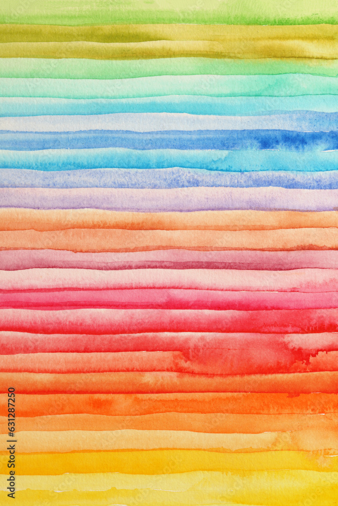 Abstract hand drawn rainbow ink watercolor strip line painting background. Texture paper.