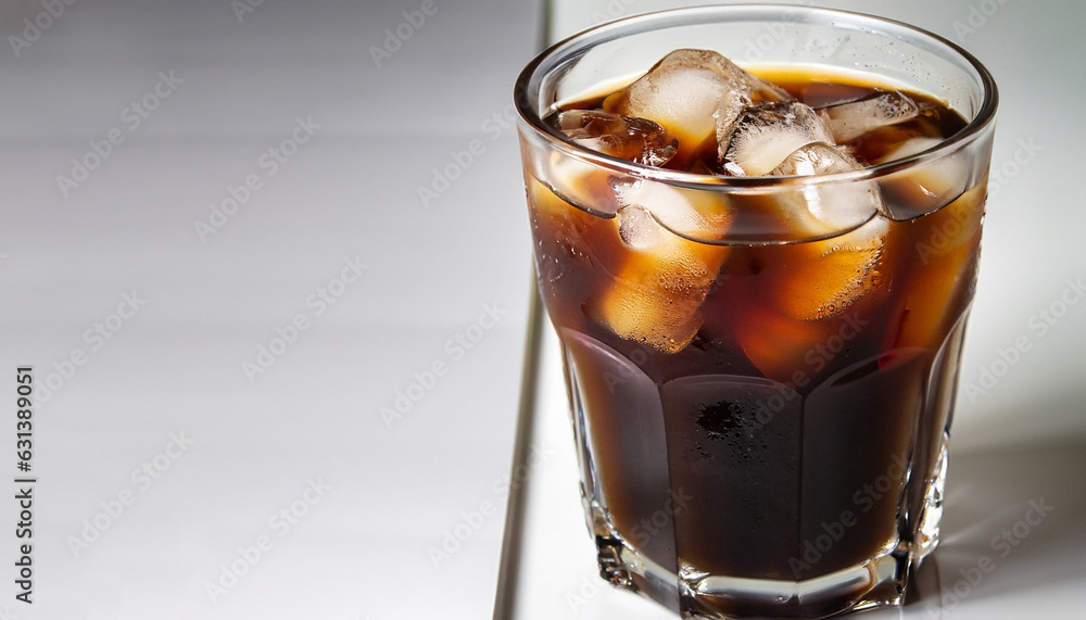 Cold black coffee with ice cubes on a white background. Coldbrew. Summer drinks.