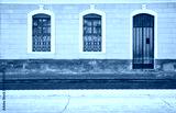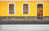 Street view of an old building facade, architecture background, Riobamba, Ecuador.