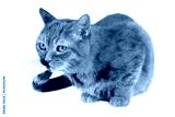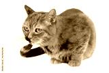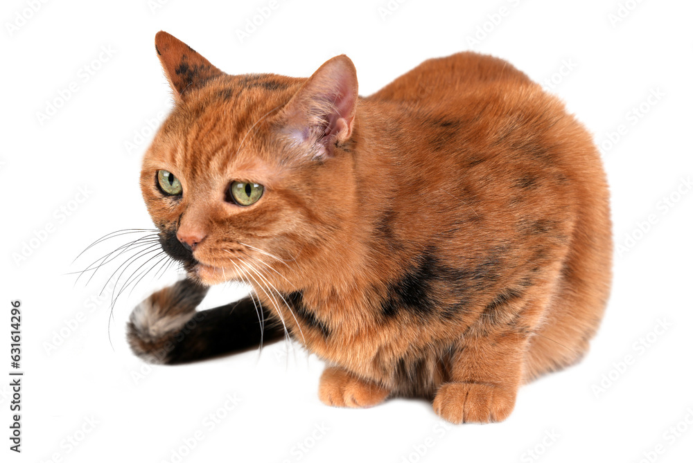 Cute brown, tabby British Shorthair Cat, green eyes, looking attentively, isolated,