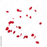 Floating red rose petal isolated on white. Background concept for love greetings on valentines day and mothers day. Space for text. rose for love Beautiful floral overlay with flying pink petals at tr