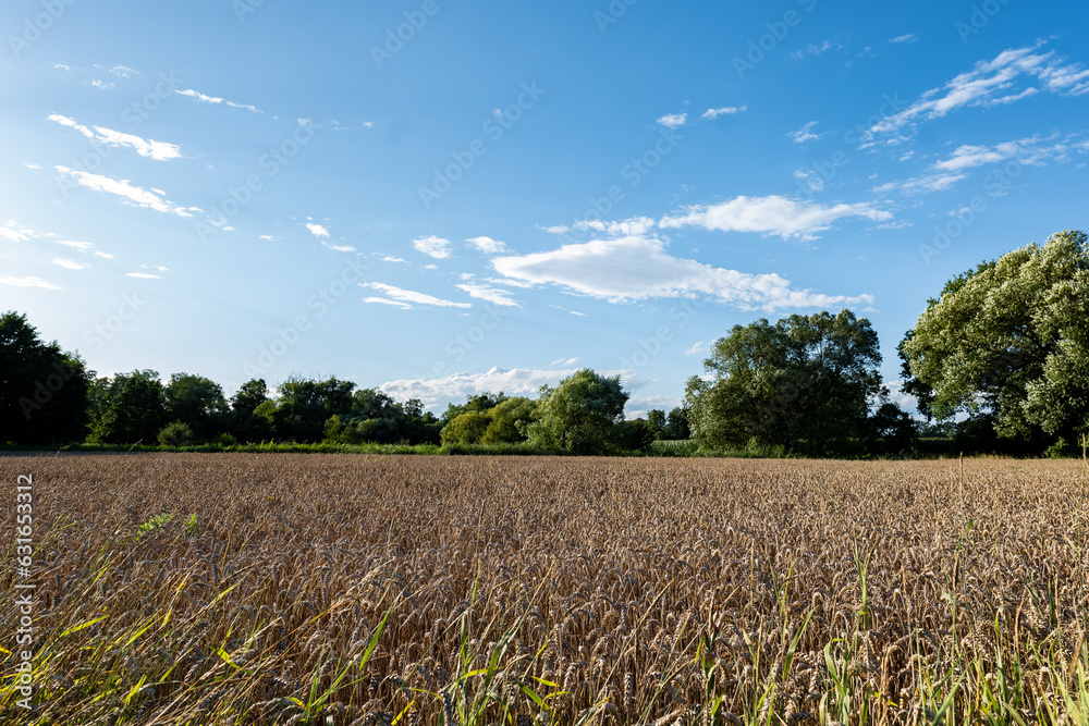 Krajobraz pola uprawnego w okresie wzrostów, jasna pogoda nieznacznie pochmurna