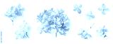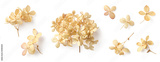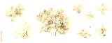 set / collection of delicate dry hydrangea flowers isolated over a transparent background, feminine natural autumn, garden, boho or wedding scene design elements, top view / flat lay, PNG