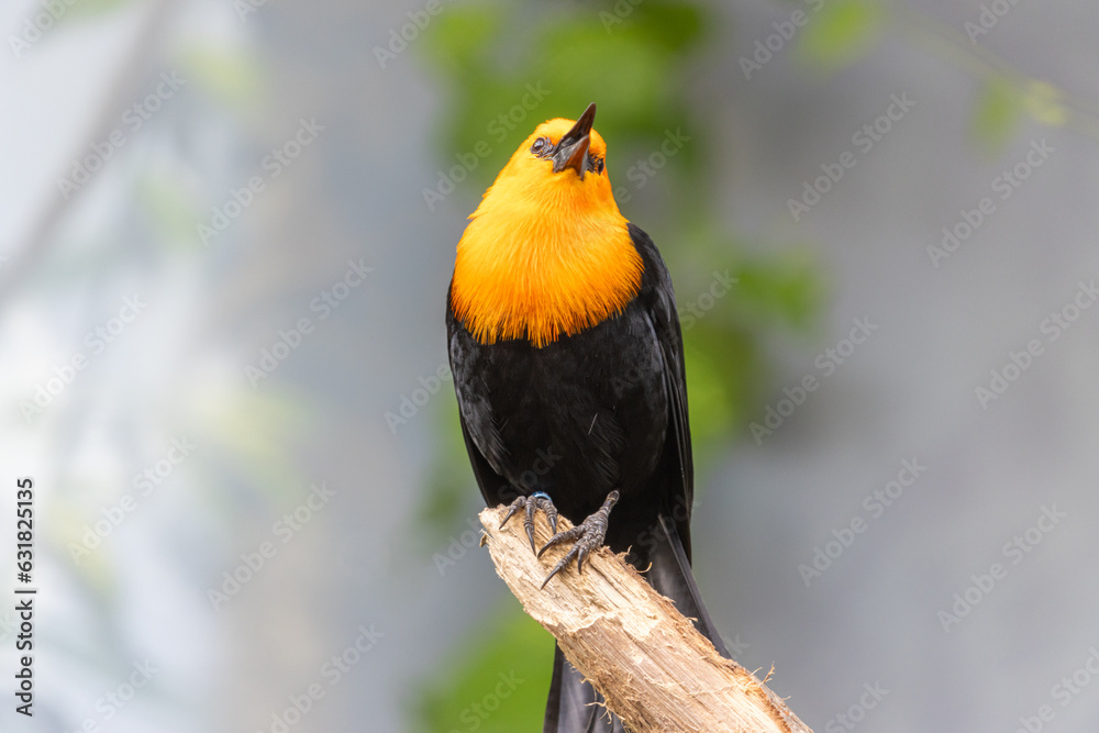 A scarlet-headed blackbird, amblyramphus holosericeus, sing on a tree