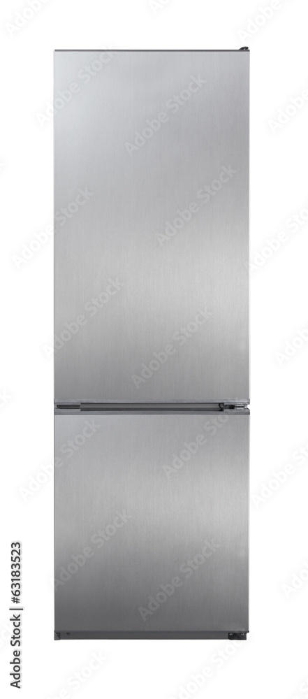 Two door stainless steel refrigerator isolated on white