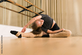 Ballerina in pointe pose. Beautiful ballet dancer stretching in class. Ballerina woman training