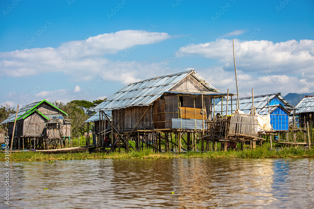 Rural houses in a village on Inle lake .Myanmar (Burma)