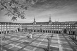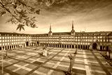Madrid Spain, city skyline at Plaza Mayor with autumn leaf foliage