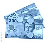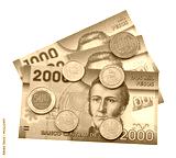 Coins and colorful bills of Chile.