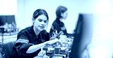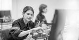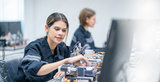 Mechanical engineering team working in robotic technology lap for research and develop for manufacturing automation and robotics.