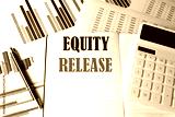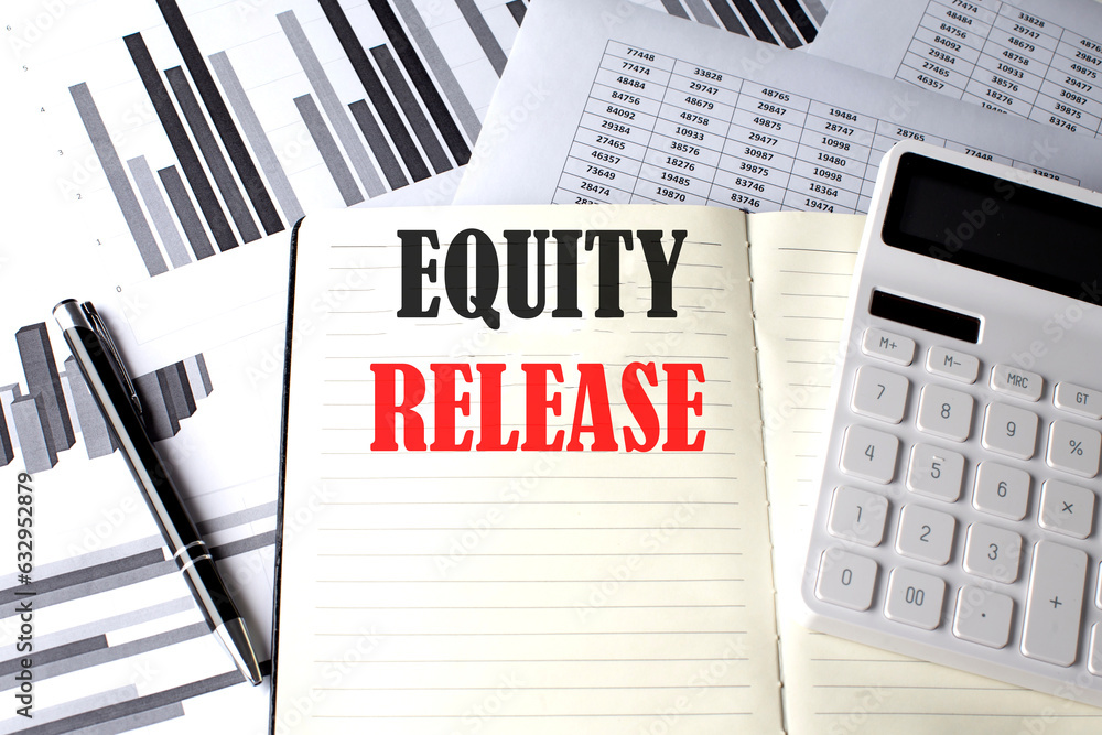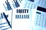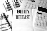 EQUITY RELEASE text written on a notebook on chart and diagram