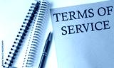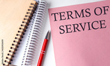 TERMS OF SERVICE word on the pink paper with office tools on white background