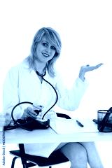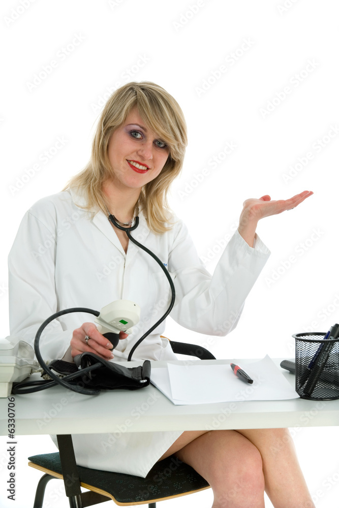 young doctor with stethoscope on white background