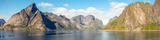 Rocky seashore in the evening. Beautiful nature of Norway. Picturesque Scandinavian landscape. Lofoten islands, Norway, Europe