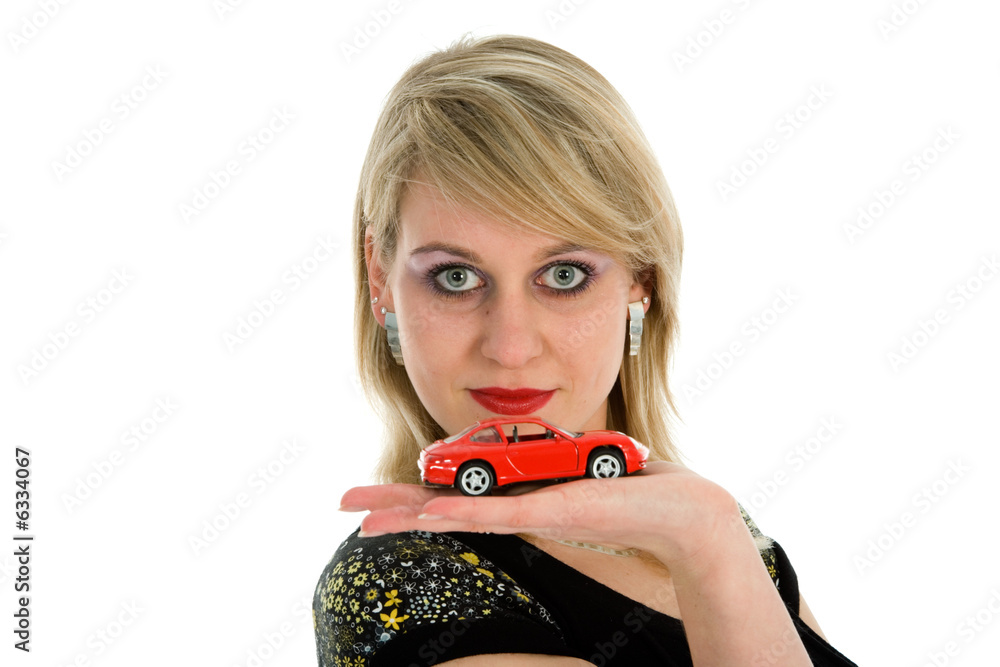 Business woman advertises selling the cars